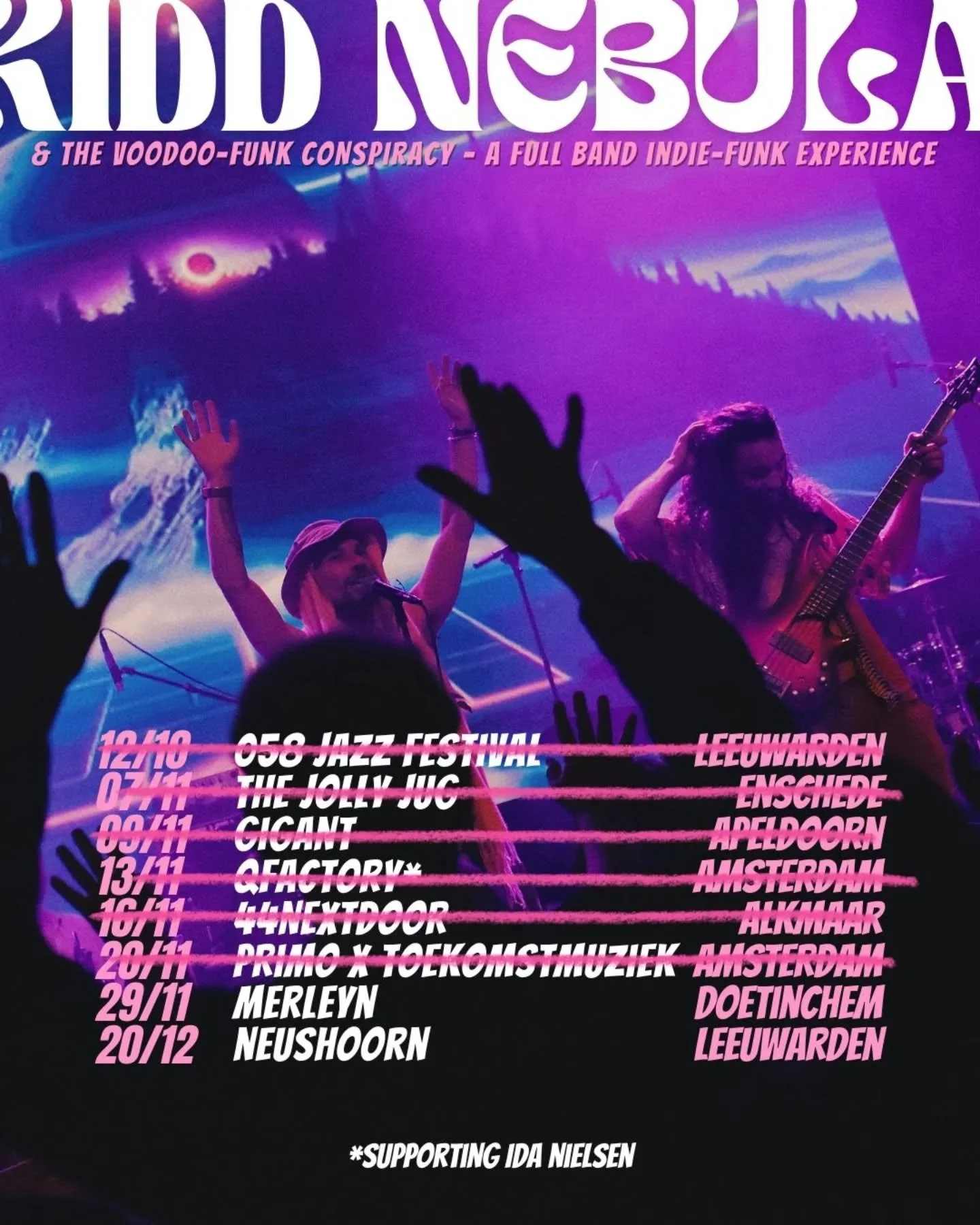 after a summer filled with shows, Kidd nebula & The Voodoo-funk conspiracy have no gone unnoticed. In july the band opened twice for new orleans funk-band boukou groove and will open for bass-icon ida nielsen in amsterdam on 13 november.